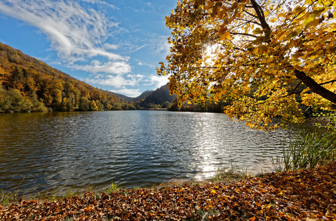 Truites et gardons s’ébattent dans l’eau. Le Lac de Lucelle est un endroit fantastique pour l’homme et l’animal.